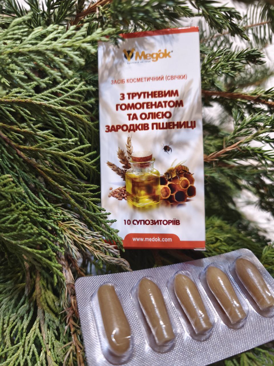 Трутневий гомогенат та олія зародків пшениці, що входять до складу свічок (супозиторіїв), є натуральними продуктами, що мають виключно природне походження та високу біологічну активність. Унікальна рецептура свічок забезпечує високий вміст біологічно активних речовин, а також значний синергетичний (взаємопідсилюючий) ефект від спільного застосування трутневого гомогенату та олії зародків пшениці.