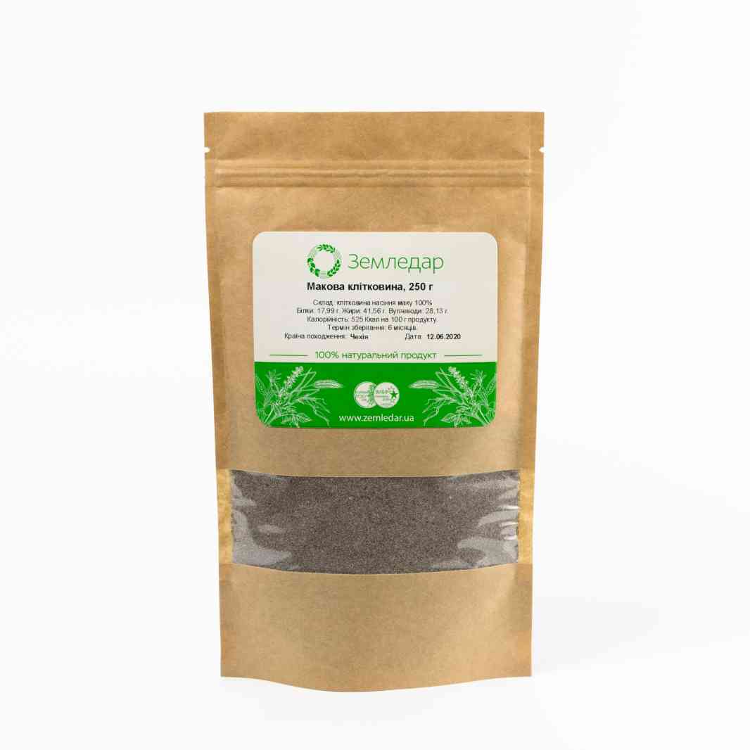 Макова клітковина виробляється методом грубого помелу зі знежиреного насіння маку. Має приємний солодкуватий смак з легкою гірчинкою. Не містить ароматизаторів, стабілізаторів та інших сторонніх домішок. Ідеальна для випічки та начинок.