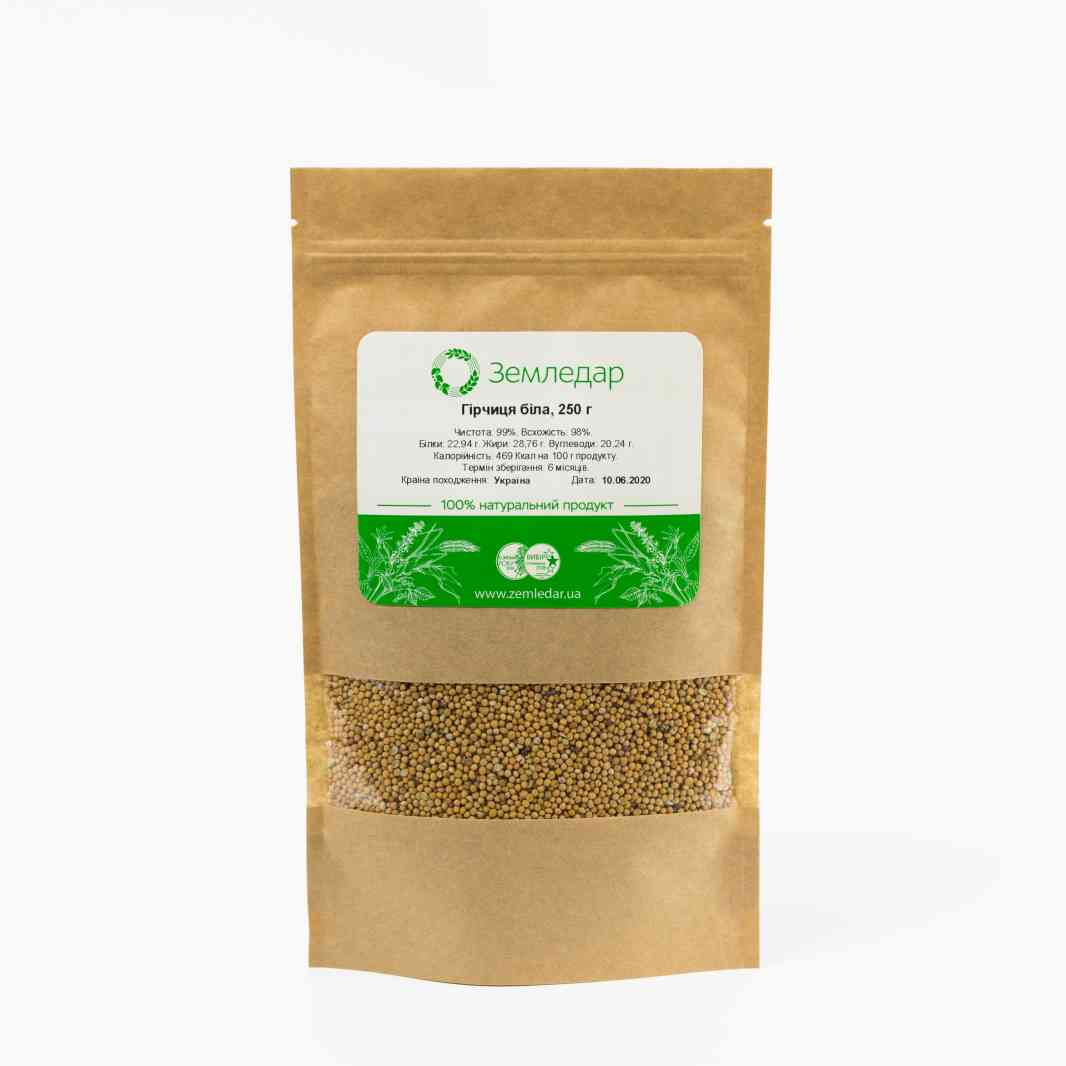 Біла (або англійська) гірчиця має найбільш нейтральний аромат і смак, у порівнянні з чорною і жовтою, оскільки містить менше летючих олій. Тепло та пекучість від неї залишається в основному на язиці, а не в носі, як це відбувається з насінням інших видів. Ідеальна для приготування гірчичних соусів, маринадів і солінь, але потребує додаткових прянощів. Окрім харчових цілей, широко використовується у косметології та лікуванні.