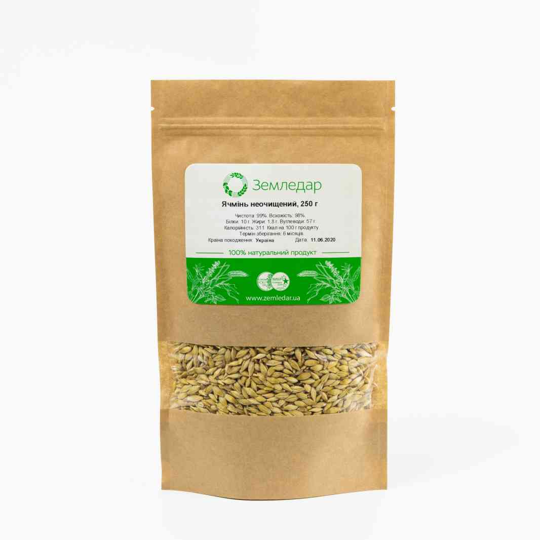 Зберігання. Продукт зберігається відповідно до санітарних норм і фасується у день замовлення. Покупець отримує свіжі ячмінні зерна з останнього врожаю.