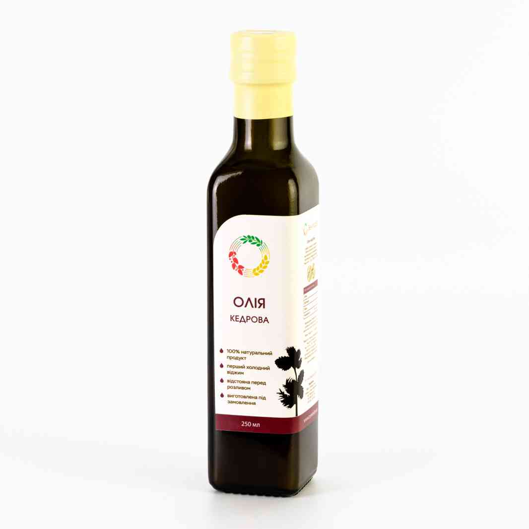 У кулінарії олія з кедрових горішків – одна з елітних та найвишуканіших. Особливий збалансований склад ставить її на п’єдестал найбільш цілющих олій. Має тонкий ніжний аромат, красивий солом’яно-бурштиновий відтінок і солодкуватий смак. Дуже добре засвоюється організмом, але варто врахувати, що ця олія – досить калорійна!