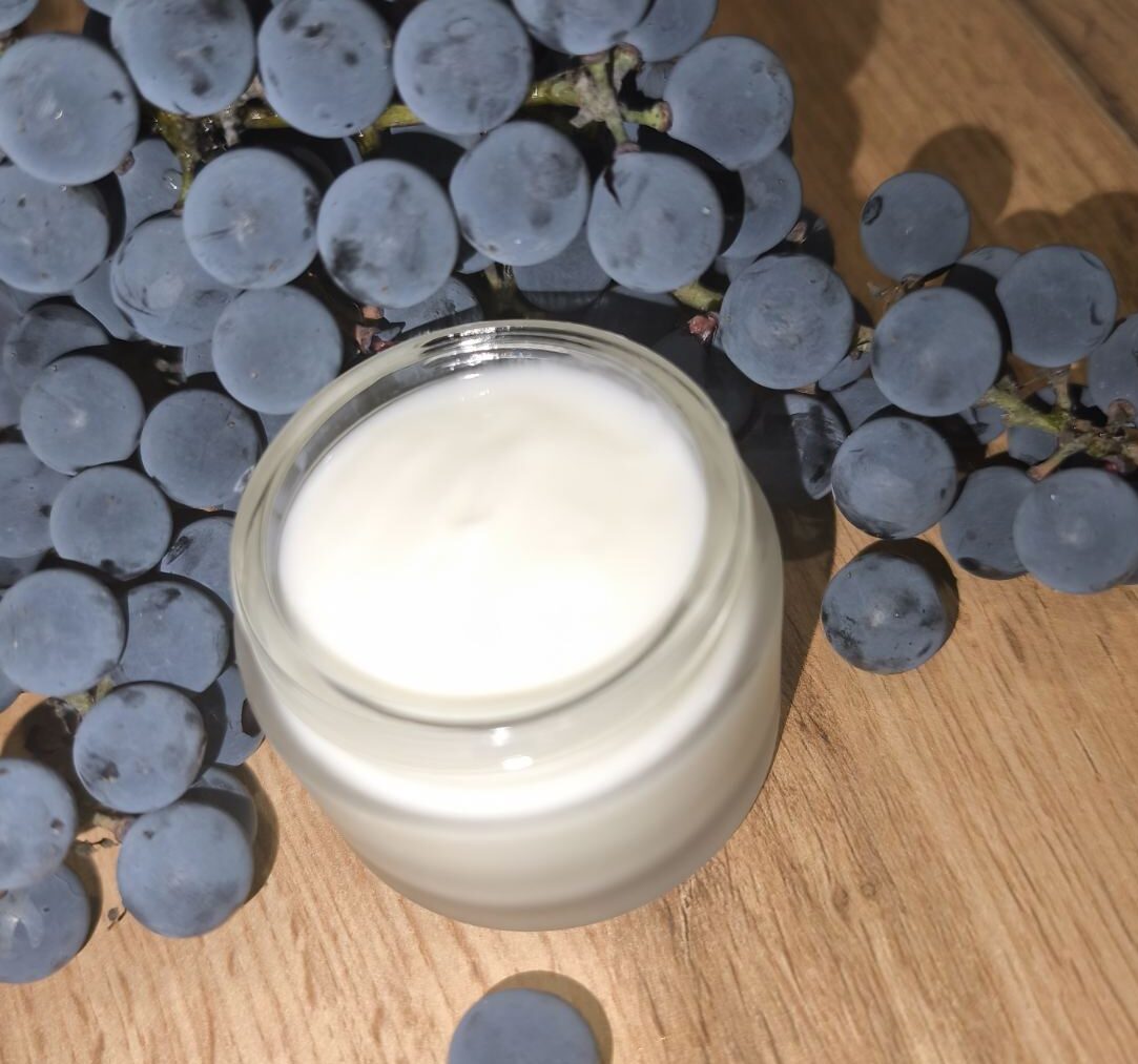 Наш крем «Таємниця Винограду» — це м’яка емульсія, що розкриває секрет свіжості, гладкості й природного сяйва шкіри.